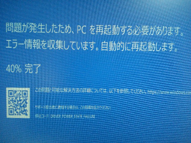 「DRIVER_POWER_STATE_FAILURE」でパソコンシャットダウン時にエラー発生