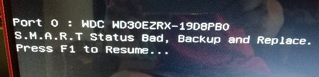 障害にもいろいろなパターンがありますが、下記のS.M.A.R.Tエラーは分かりやすいですね。