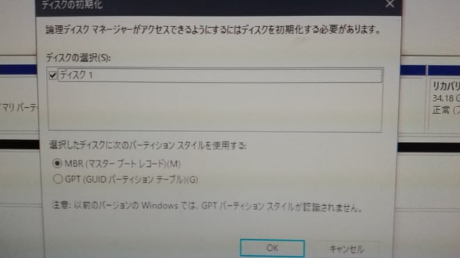 「ディスクの初期化」画面で「OK」を押してしまうと、文字通り初期化されて中のデータが消失してしまうので、OKボタンを押さないように要注意です。