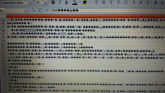 以前に比べると、このような文字化けのトラブルは減っているように思いますが、この文字化けの酷さは久々に見ました。