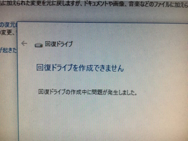 最近ではずいぶんと少なくなりましたが、以前は回復ドライブ作成時にエラーで失敗することも多かったと記憶しています。
