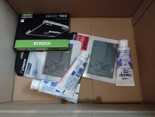 箱を開ける前から、SSDや子供用の歯磨き粉が上下左右にスライドしているのがわかり、「ああ、またか・・・」と残念な気持ちになっていたのですが、案の定開封するとまったく固定されていません。