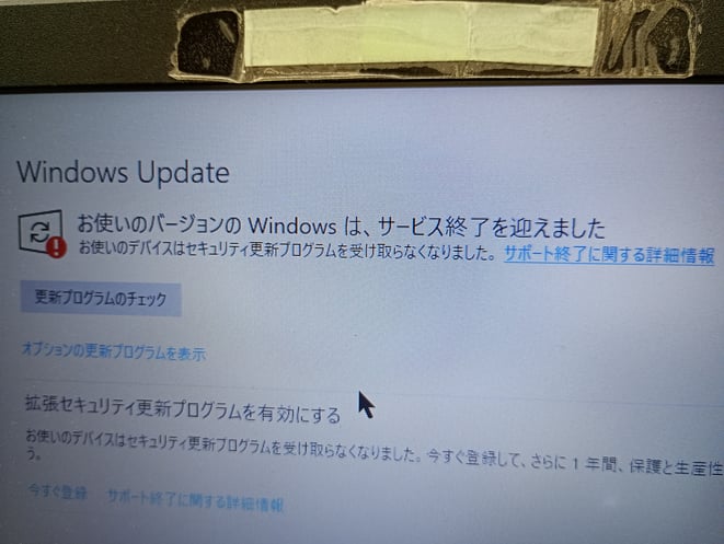 サポートが終わったWindows 10では、最終の更新プログラムのインストールが終わると、下記のようにWindows Updateができなくなります。